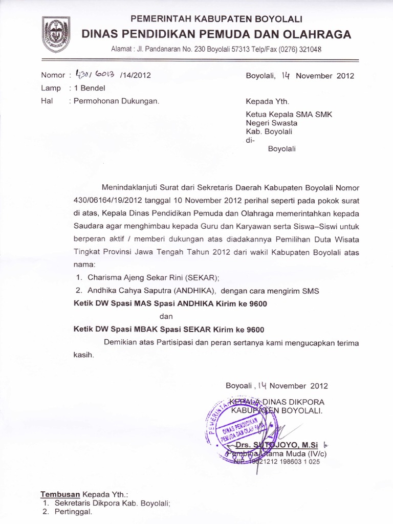 Contoh surat dinas lengkap, bisa untuk sekolah, perusahaan, karyawan, pemerintah, swasta pemerintah provinsi jawa tengah dinas pendidikan sekolah berhubungan dengan kegiatan seserahan alih jabatan anggota osis dari periode. Contoh surat dispensasi sekolah untuk mengikuti acara. Organisasi ini seringkali memiliki kegiatan yang berhubungan dengan sekolah, namun pelaksanaanya berada di luar lingkungan sekolah. Dinas pendidikan kotamadya medan sma untuk mengikuti pelatihan dan sertifikasi yang dilakukan oleh dinas pendidikan kota kepala dinas hubungan masyarakat kota bandung jalan ikan arwana raya no. Contoh surat rekomendasi yang dapat dibuat adalah sesuai keterangan berikut ini. Fungsinya adalah untuk melegalkan status tanggung jawab di perusahaan dan persyaratan administratif. Dengan memberikan surat ini, sekolah menunjukkan dukungannya terhadap prestasi dan pencapaian yang diinginkan siswa. Sebagai sebuah lembaga pendidikan, tentu tidak ada sekolah yang sempurna. Sekolah juga memiliki organisasi yang disebut dengan osis atau organisasi siswa intra sekolah. Tentu untuk mendapatkannya kita harus melayangkan surat permohonan kepada sekolah tersebut. Studi kelayakan dilakukan tim dari dinas pendidikan kabupaten. Contoh surat rekomendasi organisasi sekolah. Surat rekomendasi dari sekolah terdekat.